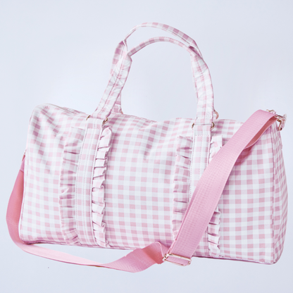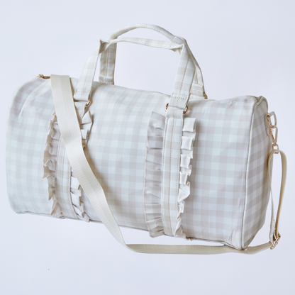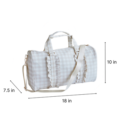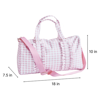 Gingham Ruffle Duffel Bag – Chic & Elegant, Perfect as a Dance Bag, Ballet Bag, Gym Bag, Weekend Bag, or Overnight Travel Bag, Personalizable with Letters and Fun Patches