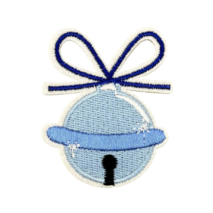 Blue Christmas Bell Embroidered Iron-On Patch – Elegant Holiday Design (6.4 x 5.1 cm)
