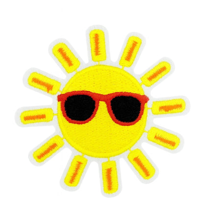Smiling Sun Embroidered Patch is a bright and uplifting accessory designed to add a cheerful and playful touch to your clothing and accessories. The patch measures 7.9 cm in height and 5.4 cm in width and features a vivid yellow sun wearing red sunglasses with neatly embroidered rays surrounding the circular center. The clean stitching and smooth finish create a high quality appearance that stands out beautifully on a variety of fabric surfaces.