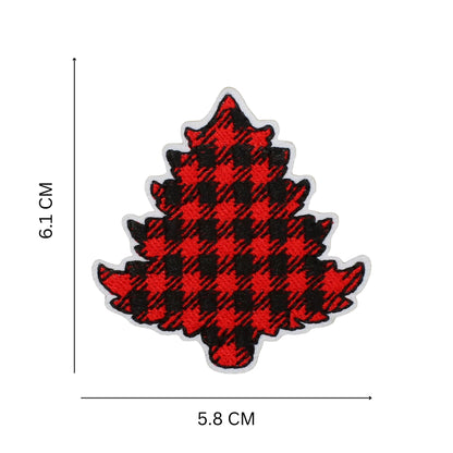 Christmas Embroidered Iron-On Patches – Festive Red & Green Plaid Holiday Designs