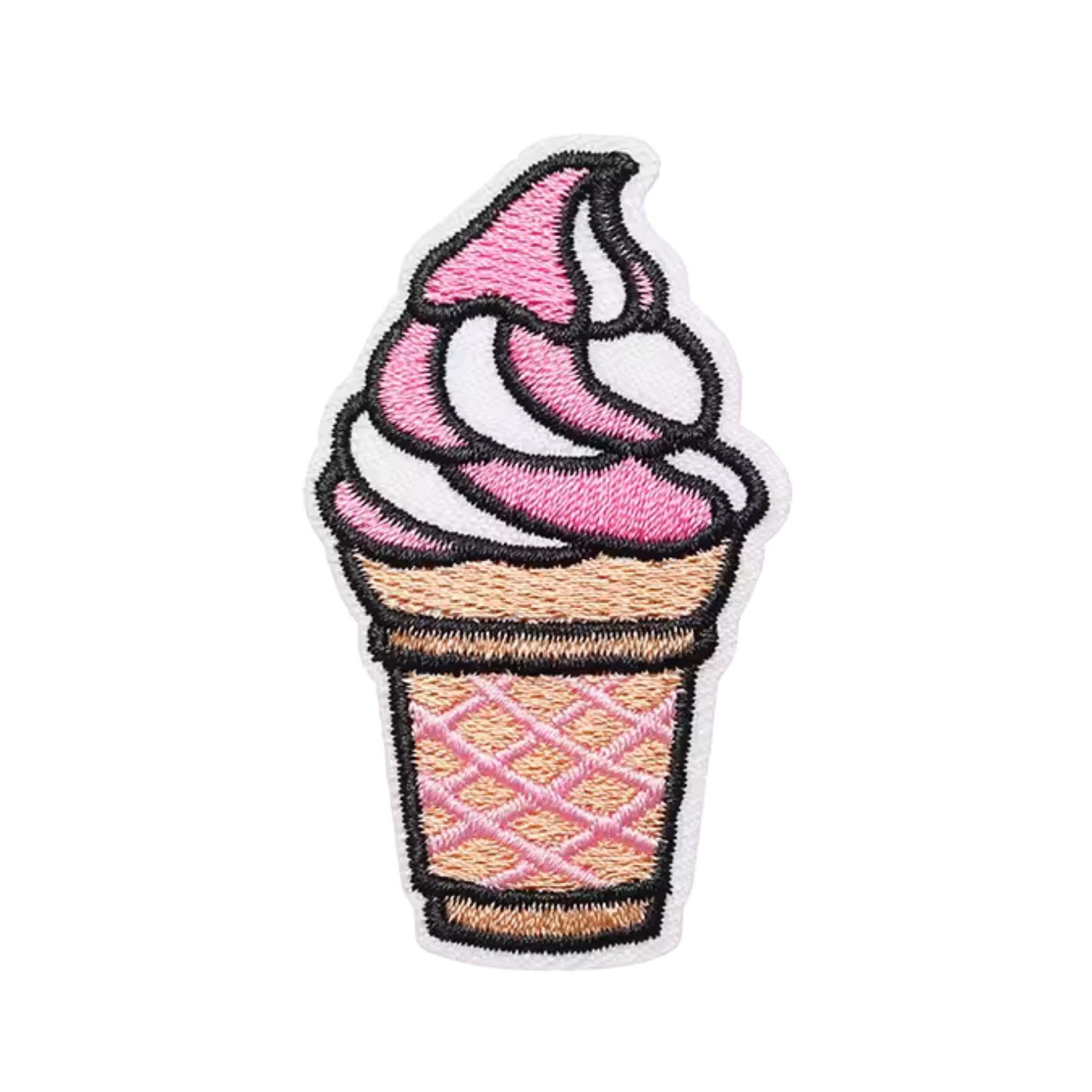 Add a playful and charming touch to your style with this Ice Cream Cone Iron On Patch, designed to bring color and personality to everyday outfits and accessories. Featuring a detailed embroidered ice cream swirl in soft pink and white tones paired with a textured waffle cone design, this patch offers a fun yet polished look.