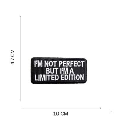 "I'm Not Perfect But I'm a Limited Edition" Iron-On Embroidered Patch – Quote Patch for Jackets, Denim, Bags
