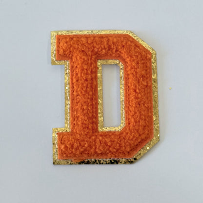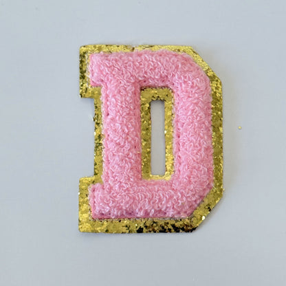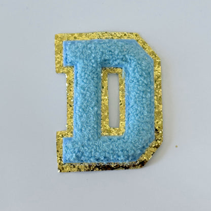Iron On/ Sew On 8cm Glitter Gold Edge Colorful Embroidered Letter Chenille Patches! These vibrant patches feature eye-catching, colorful lettering with a sparkling gold border, adding a fun, dynamic touch to any project.