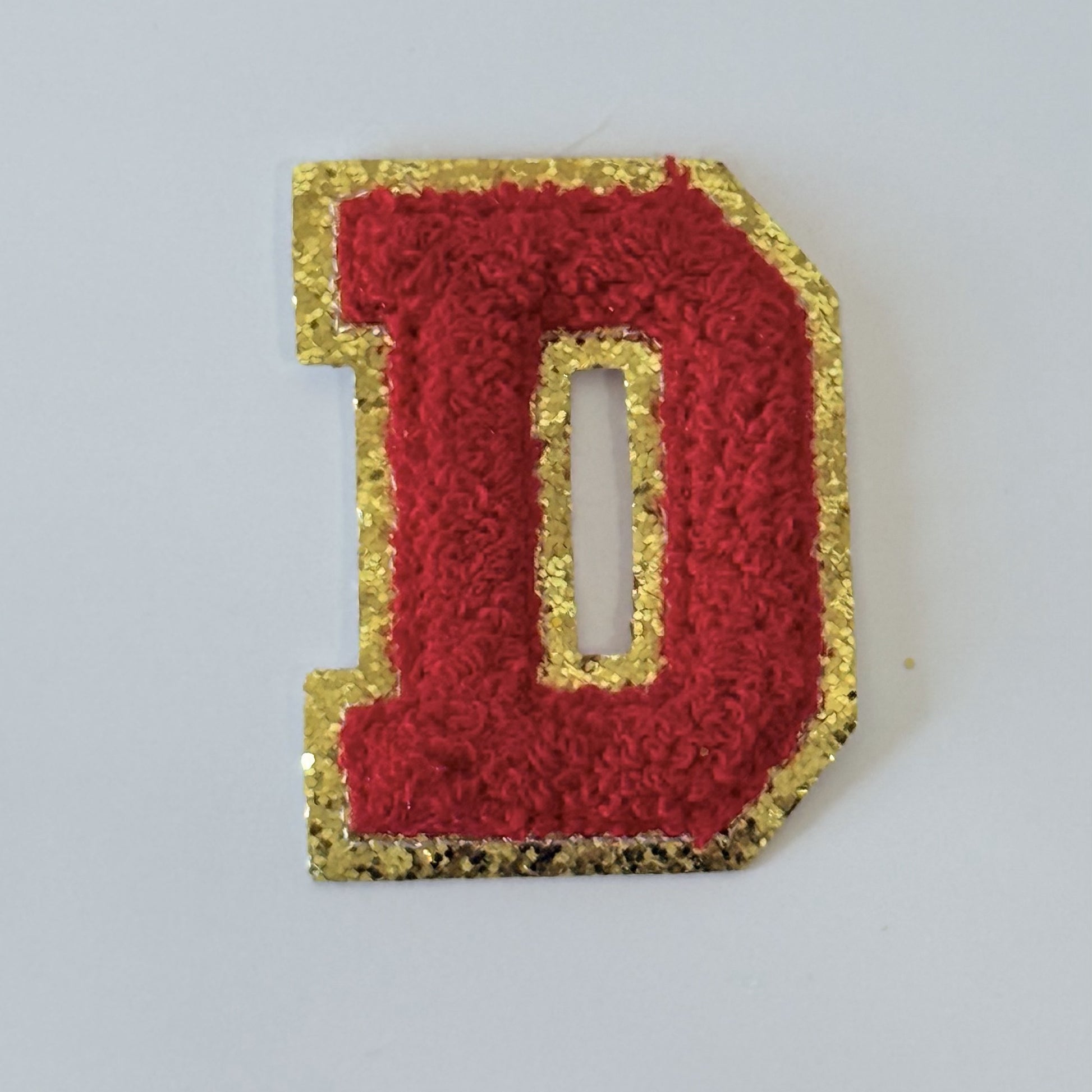 Iron On/Sew On 8cm Glitter Gold Edge Colorful Embroidered Letter "D"