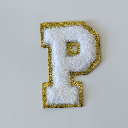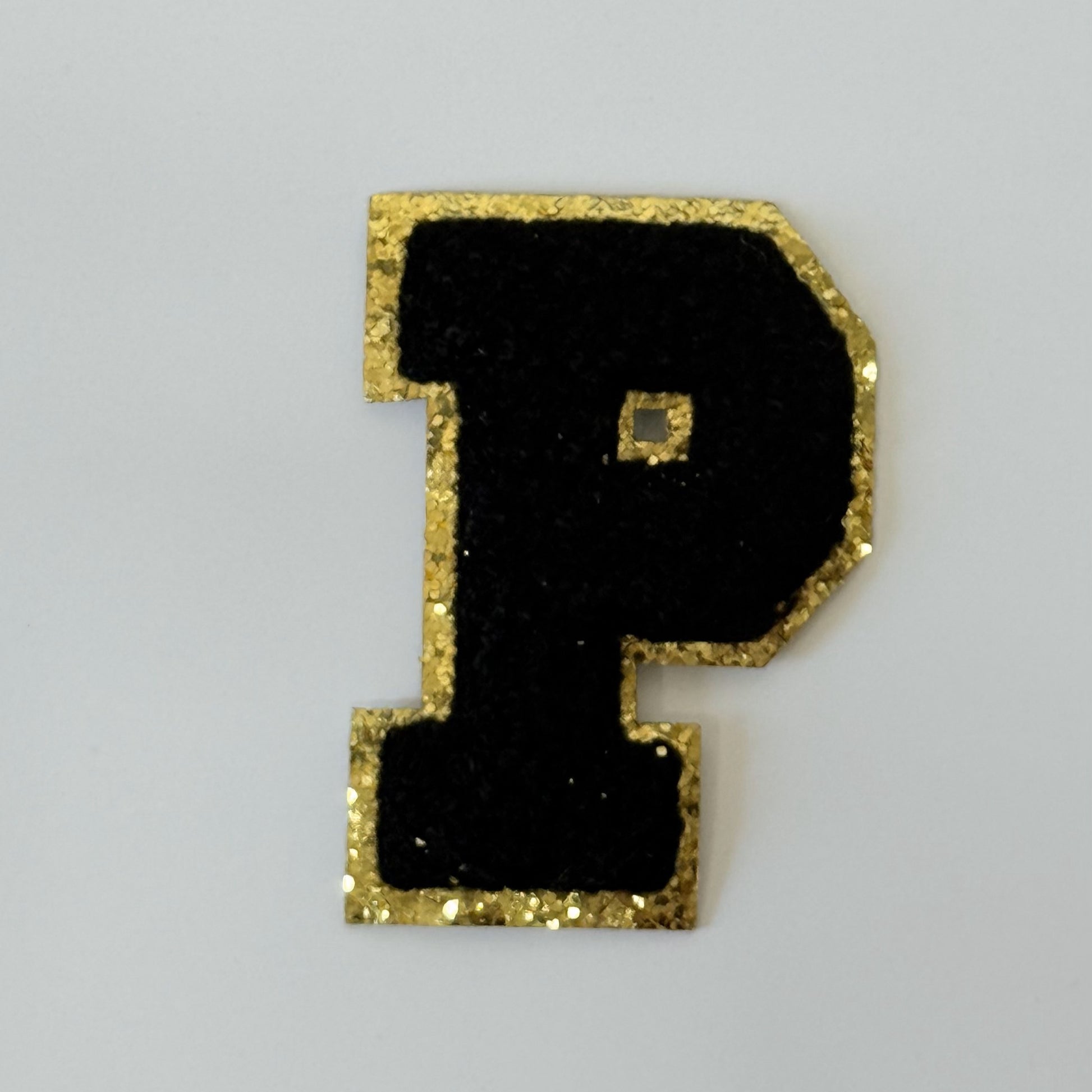 Iron On/Sew On 8cm Glitter Gold Edge Colorful Embroidered Letter "P''