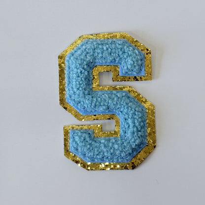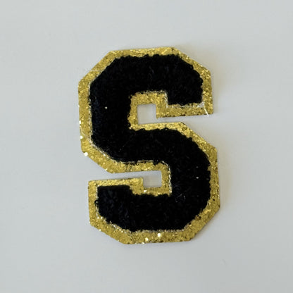 Iron On/Sew On 8cm Glitter Gold Edge Colorful Embroidered Letter "S''