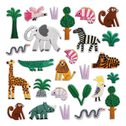Jungle Adventure Iron On Patch Set – 26 Animal and Nature Mix