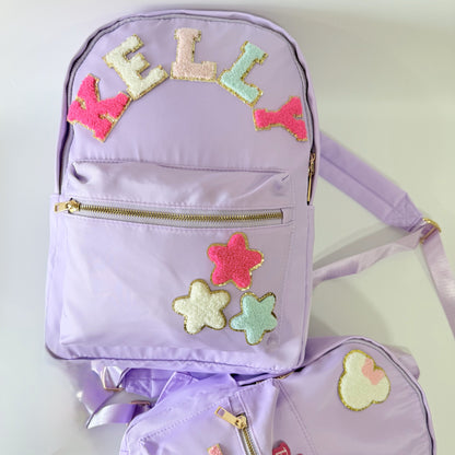 Durable Nylon Backpack for Kids – Perfect for School & Play, Customizable with Patches & Fun Details ''Lavender'' Available in Two Convenient Sizes