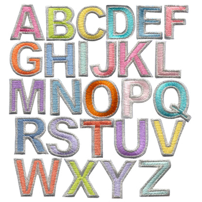 Mid-Size Pastel Alphabet Patches (A–Z, 3 cm Height) – Iron-On Letters with Silver Border