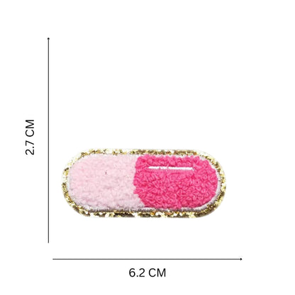 Pink & Blue Capsule Chenille Patch (6.2 × 2.7 cm) – Iron-On Patch for Denim, Backpacks & Pouches