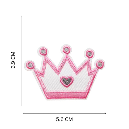 Princess Crown Embroidered Iron On Patch White & Pink, Size 5.6 x 3.9 cm approx.