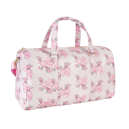 Nylon Duffle Bag – Spacious and Versatile, Personalizable with Letter and Fun Patches ''Pink Floral Print''
