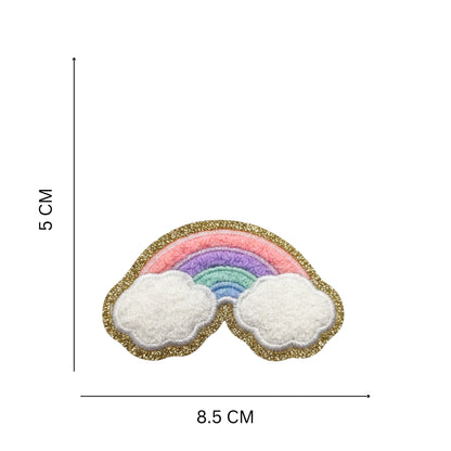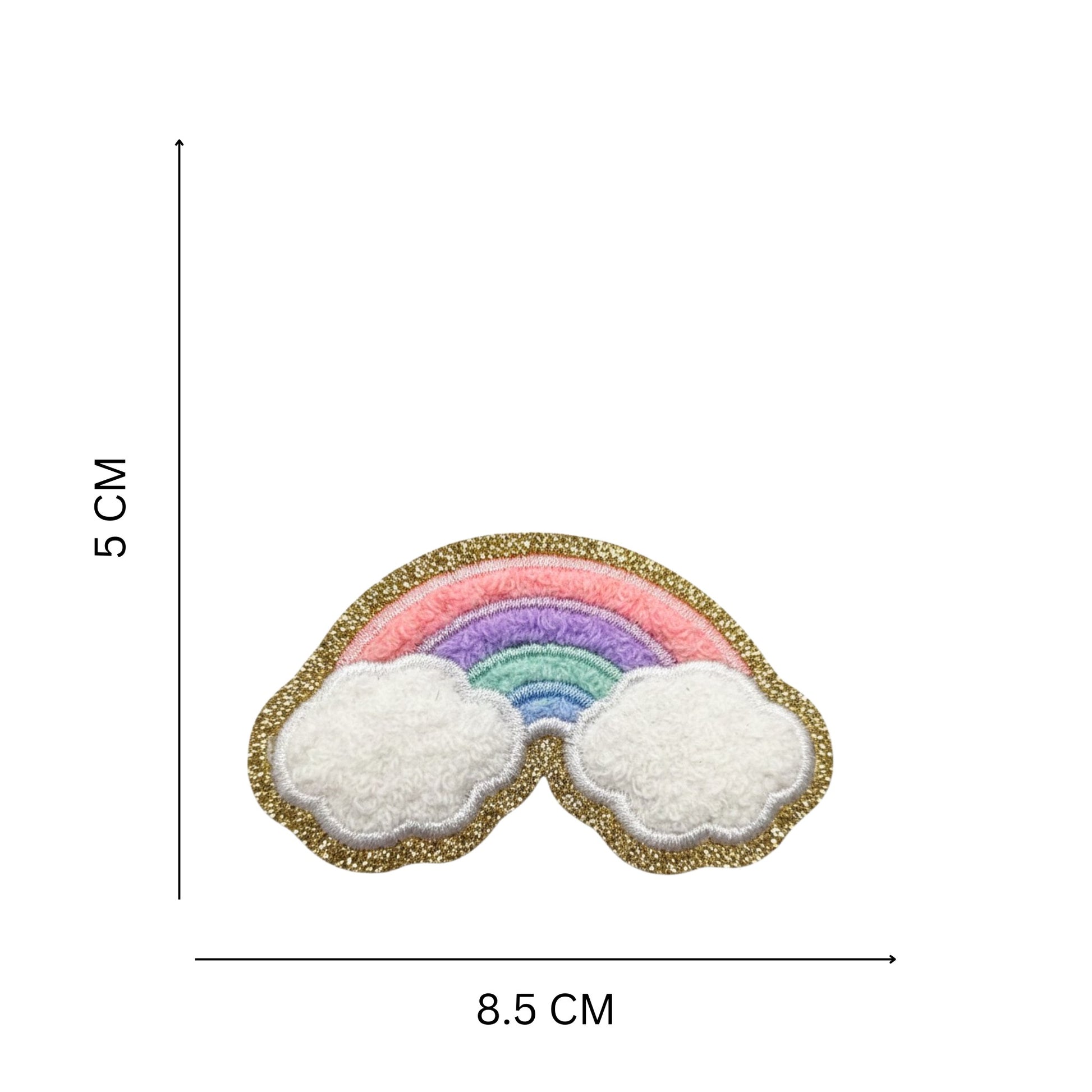 Bring a soft charm to your style with this Rainbow with Clouds Iron On Patch, thoughtfully designed to add color and texture to everyday fashion and accessories. Featuring layered pastel rainbow tones framed by fluffy white cloud detailing and a subtle glitter-accent border, this patch offers a playful yet polished aesthetic.