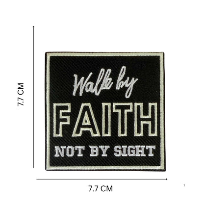 Walk by Faith, Not by Sight Iron-On Patch – Inspirational Black & White Embroidered Patch (7.7 cm x 7.7 cm)